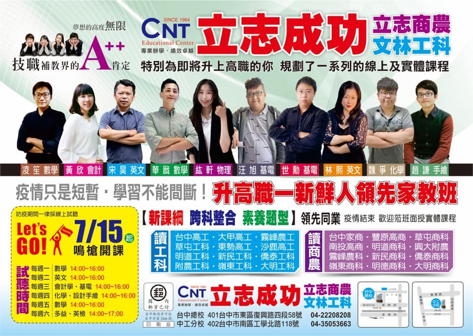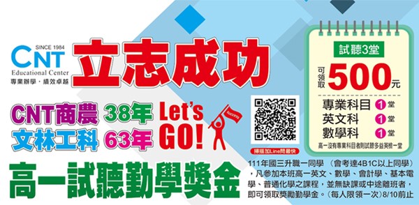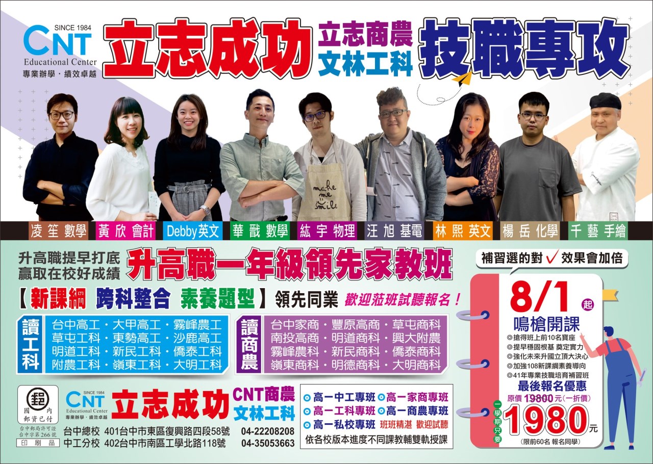 111國三升高一技職工、商、農科學生試聽7/15立即開課